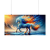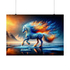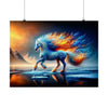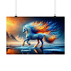 The "Frostfire Elegance" Poster is not just a piece of paper to adorn your wall; it is a window into a realm where the fantastic strides with beauty unmatched. Measuring at a generous size to capture every exquisite detail, this poster is printed on high-quality, matte-finished paper that ensures the icy blues and fiery oranges are as vivid as they are in the frozen heart of an enchanted winter morning.