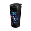 Embark on a celestial journey with every sip from the "Galactic Gaze" Stainless Steel Travel Mug. This robust 15 oz travel companion is perfect for the stargazer on the go, adorned with the enigmatic and vibrant "Galactic Gaze" image, where a majestic horse's mane unfurls into the cosmic abyss, intertwining with the stars, planets, and nebulas of deep space.
