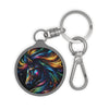 The "Galaxy Gallop" keyring tag would feature an enchanting image of a horse captured in mid-gallop, its mane and features composed of a cosmic tapestry of colors and shapes. The horse's profile is elegantly crafted with flowing lines and spirals, suggesting both motion and the ethereal substance of space. The mane is a blend of vibrant colors that mimic the swirling patterns of galaxies, with hints of stars and celestial bodies interwoven into the design. Hues of sapphire blue, emerald green, deep violet, and fiery orange create a dynamic and eye-catching spectrum that radiates against the dark backdrop of space. The overall effect is one of movement and freedom, as if the horse is galloping through the cosmos, its mane trailing behind like the tail of a comet. This keyring tag would be a striking accessory, perfect for those who dream of the stars and appreciate the majestic beauty of these noble creatures.