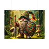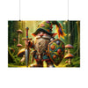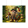 Step into a world where fantasy and bravery intertwine with the "Gnome of Valor: Sentinel Amongst the Shrooms" poster. This exquisite piece portrays Kilian the Valiant, a gnome whose very stance is a bastion of protection amidst the towering mushrooms of the Verdant Vale.