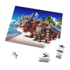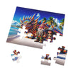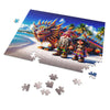 As you piece together this tableau, each puzzle piece will reveal the fine details of their vibrant attires, the textured sands beneath their feet, and the radiant scales of Iggy that mirror the vast ocean beside them. This is an opportunity to delve into the heart of the island's magic, discovering hidden nuances within the art with every piece you place.