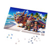 This jigsaw puzzle is a treasure trove of color, detail, and storytelling that promises not only a challenge for the mind but a feast for the eyes. Featuring the charming gnome duo, Thistlewink and Marigold, with their majestic and colorful companion, Iggy the Iguana Dragon, this puzzle brings to life their mystical beachside journey across 1000 pieces of intricately designed interlocking segments.