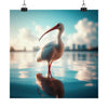 As I witnessed the mesmerizing scene unfold before me, I couldn't help but be captivated by the elegant White Ibis standing tall amidst the tranquil waters. The reflections danced effortlessly, mirroring the bird's grace and adding an enchanting touch to the composition. The soft, smooth bokeh created a dreamlike atmosphere, intensifying the afternoon's blue skies. Every detail was incredibly sharp and vivid, bringing the image to life in an almost hyper-realistic manner. The vibrant colors seemed to burst forth, perfectly capturing the excitement and energy of the moment.