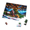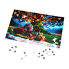 As you connect each piece, watch as the grandeur of an ancient tree unfolds, its branches adorned with twinkling lights and hanging golden hearts, each emitting a soft, enchanting light. The surrounding meadow, dotted with the gentle glimmer of fireflies, and a sumptuous picnic with roses, chocolates, and a bottle of sparkling elixir, offers an intricate challenge for puzzle enthusiasts.