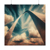 In this mesmerizing photograph of The Gateway Arch, captured from a ground-up perspective, the unique angle lends a fresh and captivating view of this iconic architectural marvel. Bathed in the warm glow of the bright afternoon light, the arch stands resolute against a backdrop of puffy clouds that add an ethereal touch to the composition. The creamy bokeh gently frames the structure, enhancing its majestic presence. With crisp details and photo-realistic vibrant color tones, every intricate element of the arch is brought to life, while the insanely detailed quality of the image immerses viewers in a truly immersive experience.