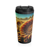 Discover the 'Infinite Bloom Fractal' Travel Mug, a 15 oz stainless steel companion that encapsulates the splendor of mathematical magic in its design. Wrapped with the vivid, complex beauty of a fractal sunflower field, this travel mug is an ode to the symmetry and patterns found in nature, rendered in exquisite, eternal gold.