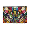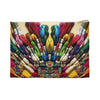 This exquisite accessory pouch is adorned with a mesmerizing pattern that mimics a mosaic made from the finest of embroiderer's threads. The central feature of the design is a dazzling array of beads and gemstones, intricately embroidered to create a stunning jewel-like effect. Surrounding this are skeins of embroidery floss in a rich array of colors, their ends fanned out to create a symmetrical, kaleidoscopic effect against the cream background of the pouch. The vivid hues range from the deepest of purples to the brightest of yellows, forming a rainbow that wraps around the pouch. Crafted from premium materials, the pouch is both sturdy and stylish, perfect for holding a variety of accessories from makeup to craft supplies. Its zippered enclosure ensures the safekeeping of your treasures within, while the brilliance of its design makes it a must-have for anyone who appreciates the artistry of needlecraft. Whether used for storing everyday items or as a travel companion, this accessory pouch is sure to captivate and charm