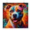 Kaleidoscopic Canine is a visually stunning poster that captures the essence of the pitbull's robust and affectionate nature through a spectacular display of chromatic artistry. The poster depicts a pitbull bursting with character, its expression one of pure joy and loyalty, which the breed is renowned for.