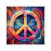 The peace sign itself is central to the design, drawing the eye with its bold, contrasting hues of warm reds, oranges, and yellows against the cooler blues and purples in the background. Each segment of the symbol seems to contain a universe of spirals and loops, suggesting depth and movement. These stickers would appeal to those who appreciate psychedelic art and convey a message of peace in a dynamic and artistic way. They would be perfect for adorning laptops, notebooks, and other personal items for a touch of flair and positivity.