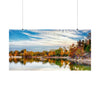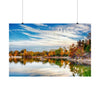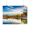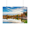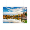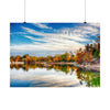 Immerse yourself in the enchanting beauty of late fall at Silica Quarry Lake with this captivating photograph. The scene dances with bold vibrant tones, reflections, and playful wispy clouds, creating a truly mesmerizing sight.