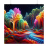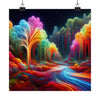 Using bold colors, I painted the towering trees with hues that surpassed imagination. Their trunks, vibrant like a rainbow after the rain, pulsed with unseen energy. Each branch, a tapestry of intertwining colors, seemed to dance and sway with the rhythm of a celestial symphony. The leaves, aflame with radiant light, transformed the familiar greens into an otherworldly palette of blues, pinks, reds, and purples. Mesmerizing and surreal, they appeared to emit their own gentle glows.
