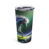 Quench your thirst for the mystical with the Spectral Stripes Stainless Steel Tumbler, featuring the captivating "Luminous Halo" design. This 20-ounce vessel is not just a drinkware item; it's a portable piece of art. Wrapped around the sleek, durable stainless steel body is the image of the enchanting zebra from the "Luminous Halo," its stripes a symphony of black and white, bending and twisting in an optical ballet. The mane and tail of this majestic creature cascade in a spectral display of color, resembling the aurora borealis captured in strands of light.