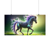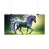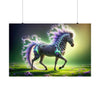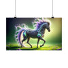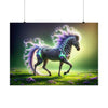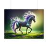 Step into a world where fantasy gallops across the realms of imagination in the "Luminous Nebula" poster. At the heart of a verdant meadow, kissed by the soft glow of twilight, a majestic zebra strides with an ethereal grace. But this is no ordinary zebra; its stripes ripple with the cosmic dance of a distant nebula, while its mane and tail bloom with iridescent tufts, spiraling into fractal wonders that defy the natural order.