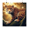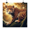 With unrivaled precision and attention to detail, this photo of a Jaguar in a tree up high on a rock showcases crisp details that give it a photo-realistic quality. The rich color tones bring the image to life, making every shade and hue of the jaguar's coat shine with vibrancy.
