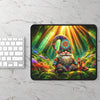 Discover the ultimate fusion of enchantment and ergonomics with the Mandalas and Mythos Gaming Mouse Pad. This exquisite piece of art for your desk features a radiant gnome sage, resplendent in a robe adorned with mandala patterns that echo the profound mysteries of the forest. Beside him, a fierce yet friendly mythical dragon sits in repose, both bathed in the celestial light cascading through the canopy above.