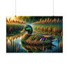 Designed to evoke a sense of peace and wonder, this poster is an ode to the quiet moments of dawn when nature reveals its most intimate beauty. It's a perfect addition to any space that calls for a touch of serenity and an appreciation for the artistry of wildlife. Bring a piece of the natural world's splendor into your home or office with this exquisite portrayal of a mallard duck in its lush habitat.