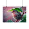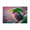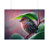Once upon a time, in the midst of a peaceful garden, a charming house finch named Milo found himself seeking shelter from a sudden downpour. Raindrops fell upon the world around him, creating a symphony of soothing sounds. Perched on a branch, meticulously sheltered by a single leaf, Milo marveled at the beauty of the rain.