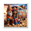 Introducing our "Nomadic Whimsy" magnet collection, perfect for adding a touch of enchantment and free-spirited charm to your refrigerator or any magnetic surface! Each magnet features a captivating image of two whimsical gnomes sharing a serene moment by the seaside. The male gnome, with his majestic white beard and colorful pointed hat, sits next to a female gnome whose braided hair and floral headband evoke a sense of peace and joy. They are comfortably leaning against a classic, vibrantly painted van, adorned with intricate patterns and psychedelic colors that harken back to the 60s' era of love and freedom.