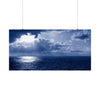 Surrender to the majestic beauty captured in "Ocean Glory Nights" - a photograph that encapsulates the serene and captivating atmosphere of a Maui sunset on the ocean. The tranquil sea is adorned in stunning shades of blue that gently meld with the puffy cloud formations that dance in the sky. One cannot help but be enveloped by the natural beauty of this image, and be swept away by the magical aura of the Hawaiian evening sky. Gaze upon the breathtaking beauty and let the stunning interplay of colors and textures inspire you to revel in the wonder of the natural world.