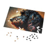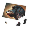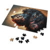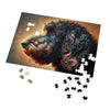 Piece together the extraordinary with 'Opal's Whorled Whimsy' jigsaw puzzle. This enchanting puzzle invites you to align each curve and contour of a remarkable canine's fur, rendered in a vivid array of swirling colors. As you connect the pieces, watch as shades of deep black, radiant copper, and subtle iridescent pinks and blues emerge to form the hypnotic and luxurious curls that define this unique artwork. The central focus is the dog’s expressive eye, a window to its soul, that brings life to the entire masterpiece. Ideal for puzzlers who appreciate the blend of art and challenge, this jigsaw puzzle will not only provide hours of engaging activity but also result in a stunning piece of art worthy of being displayed. With each piece, you're not just completing a puzzle, but bringing to life a whimsical world of color and delight that captures the imagination.