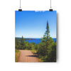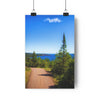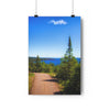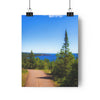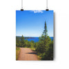 Embrace the journey along the tranquil trail of Tettegouche State Park, leading to the breathtaking vista of Palisade Head. The path, embraced by lush greenery and the towering sentinel of a pine tree, guides adventurers toward the stunning view of Lake Superior's vast expanse. The deep blues of the water contrast magnificently with the rugged cliffs that stand as timeless guardians of the North Shore. The lone cloud in the vast sky whispers of the quiet solitude that can be found here, where nature's grandeur unfolds at every turn, inviting hikers and nature enthusiasts to discover one of Minnesota's most majestic overlooks.