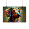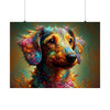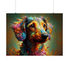 Printed on premium quality material that ensures the longevity of every hue, this poster is a tribute to the artistic spirit that pets often inspire in us. It's an invitation to viewers to ponder the possibilities of a world as seen through the dreamy eyes of a pup whose coat is a canvas painted by nature's own hand.