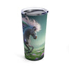 Every detail of the "Phosphorescent Solaris" is rendered in stunning clarity, from the mystical patterns that swirl like galaxies across its body to the soft field of flowers that seems to whisper beneath its hooves. The tumbler itself is crafted with premium stainless steel, ensuring your drinks stay at the perfect temperature, whether it's a hot morning coffee or a cool afternoon refreshment.