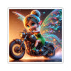 The intricate design captures every detail of our pixie biker – from the shimmering wings to the polished chrome of her mystical motorcycle. The colors remain vibrant, a testament to the high-quality printing process that brings the art to life.