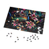 With every connection, the puzzle grows more complex and beautiful, echoing the intricate dance of the universe's endless cycle. The "Pulsar Plume Parade" jigsaw puzzle is not just a visual feast; it's an experience, a meditative exploration of the splendor above us. Comprising hundreds of pieces, this puzzle is ideal for the astute puzzler eager to embark on an astral adventure, culminating in a breathtaking tableau that's as rewarding to complete as it is to behold.