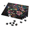 As you fit each piece, watch the cosmic peacock unfold its feathers, a spectacular array of neon blues, vivid purples, and fiery oranges, resembling the timeless artistry painted across the canvas of space. The interplay of light and shadow, color and form, comes to life piece by piece, revealing a grand lily at its core, sculpted from the very stardust that drifts through the celestial garden.