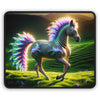 Elevate your gaming setup with the "Radiant Celestria" Gaming Mouse Pad, a fusion of ergonomic design and mystical allure. The surface of this mouse pad is graced with the vivid and vibrant depiction of the celestial zebra, 'Radiant Celestria', its striking neon stripes a testament to the boundless creativity of the digital realm. The mane and tail of this mythical creature shimmer with a spectrum of radiant hues, resembling the ethereal feathers of an otherworldly bird.