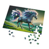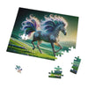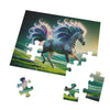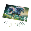 Embark on a mesmerizing challenge with the "Radiant Starlight" jigsaw puzzle. This puzzle features a striking image of a fantastical zebra, an enchanting creature with a vibrant and swirling mane and tail that cascades in a kaleidoscope of radiant colors. Each piece of the puzzle will draw you into a dreamlike landscape where the lush, rolling hills are sprinkled with delicate, pastel-hued flowers, inviting the sense of a gentle, otherworldly breeze. The zebra's stripes weave a complex, mesmerizing pattern, almost musical in its rhythm, that will captivate and delight as you fit each piece into place. With its brilliant iridescence and a background that transitions from the verdant earth to the twilight of a star-sprinkled sky, this jigsaw puzzle promises hours of engaging relaxation and will leave you with a spectacular piece of art to cherish. Perfect for puzzle enthusiasts and art lovers alike, the "Radiant Starlight" brings a touch of magic and awe to your puzzle collection.
