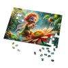 Step into a world of enchantment with Rain's Whisper: The Frolic of a Forest Pixie Jigsaw Puzzle. This charming puzzle is not just a game; it's a journey into a storybook scene where every piece brings you closer to the heart of a whimsical realm. As you fit each piece together, watch the story of the jubilant pixie on her sunflower throne come to life, her infectious laughter almost audible through the vibrant, detailed artistry.