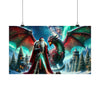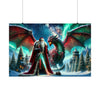 This poster is an invitation to gaze upon an epic tale of mythical creatures, legendary heroes, and the timeless magic of the holiday spirit. It's a blend of vibrant colors and imaginative grandeur, designed to enchant and inspire, making it a perfect celebration of the festive season for any fantasy enthusiast's collection.