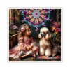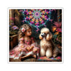 The intricate details of the girl's floral gown and the poodle's expressive, joyful face are captured with stunning clarity. The vibrant hues are printed with precision, ensuring each sticker pops with the same lively colors that bring this enchanted garden to life.