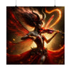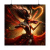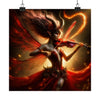 Embrace the fantastical with this exquisite poster, a tribute to the enigmatic Infernal Queen. As you gaze upon it, you are transported to a realm where the very fabric of reality quivers with the vibrations of her otherworldly violin. The rich, dark tones of her flowing gown, accented with sparks of crimson and gold, serve as a visual symphony that complements the boldness of any room.