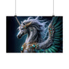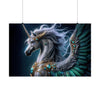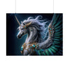 With a design that harmonizes the elegance of renaissance tapestries and the vivid depth of modern digital art, this poster is perfect for those who seek to grace their walls with a touch of fantasy and inspiration. The Silvermane Unicorn, set against an obsidian backdrop, is rendered with such detail that each feather and jewel seems tactile, beckoning the observer to