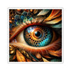 Each sticker is a portal into the artwork's soul, showcasing the central image of an eye that burns with an inner fire of gold, orange, and blue hues, reminiscent of a starburst. The pupil lies at the center, encircled by an intricate network of honeycomb cells that fade into a spectrum of blues and greens, creating a sense of depth and complexity.