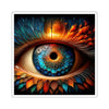 Transform the mundane into the extraordinary with "Spectral Sightlines" Sight Stickers, inspired by the enchanting visual journey of the original artwork. Each sticker is a conduit to a fantastical perspective, featuring the rich, vivid depiction of an eye that holds within its gaze the fiery hues of sunsets, the serene blues of ocean depths, and the earthy tones of an untamed wilderness. The iris is segmented into feather-like and scale-esque patterns, surrounding a pupil that peers into a silhouetted forest scene, while a honeycomb of hexagons encases it all in a dance of shadow and light.