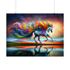 The "Spectrum Strider" poster is a gateway to a realm of wonder, a piece of art that isn't just seen, but felt. This isn't your ordinary poster; it's a portal to a story untold, a narrative waiting to unfold on your wall. As the Spectrum Strider gallops across the twilight canvas, its mane a flowing river of colors, the image invites not just gazes but daydreams.