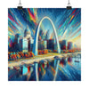 Step into a realm where imagination knows no bounds and abstract colors seamlessly blend with shards to form a surreal interpretation of the Saint Louis Missouri Riverfront Cityscape With The Gateway Arch. The captivatingly crisp details and hyper-realistic execution bring this artwork to life, transporting viewers into a world that defies logic. Vibrant color tones dance across the composition, infusing it with a dynamic energy and creating a truly immersive 3D experience. Prepare to be amazed by the astonishing level of detail that enriches every inch of this visually enticing masterpiece.