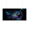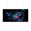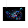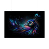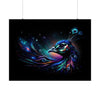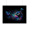 "Stellar Plumage" is an enchanting poster that captures the majestic beauty of a cosmic peacock in a swirl of interstellar wonder. The peacock, etched against the velvety darkness of space, is illuminated by vibrant hues of blue, purple, and pink that echo the mysteries of the galaxy. Its feathers are adorned with patterns reminiscent of distant nebulas and starry nights, creating an almost hypnotic effect. Gleaming stars and ethereal light effects enhance the bird's plumage, giving the impression that it has just burst forth from the fabric of the cosmos. This artwork is a feast for the eyes, inviting viewers to ponder the magic that exists both in the natural world and the boundless universe beyond.