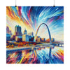 Prepare to be transported to a fantastical world with an artwork that merges abstract colors and shards into a surreal interpretation of the Saint Louis Missouri Riverfront Cityscape With The Gateway Arch. The crisp details and hyper-realistic elements create a 3D experience like no other, where vibrant color tones inject energy and vitality into the composition. The insanely detailed elements provide depth and dimension to every corner of this masterpiece, evoking a sense of awe and wonder in viewers.