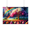 Perfect for those who seek to adorn their space with an image of serenity and awe-inspiring beauty, this poster is not just a decoration, but a portal to a mythical realm. It promises to transform any room, inspiring imagination and offering a daily reminder of the magical moments that lie in the intersection of the natural and the fantastical. Add 'Spectrum Arbor: The Blossom of Chromatic Wonders' to your collection and let your space bloom with the eternal spring of colors.