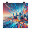 Enter a realm of abstraction where colors and shattered forms come together to create a surreal interpretation of the Saint Louis Missouri Riverfront Cityscape With The Gateway Arch. The impeccable attention to detail and hyper-realistic rendering transport viewers into a 3D experience that blurs the lines between reality and imagination. The vibrant color tones leap from the canvas, infusing the composition with a pulsating energy. Prepare to be amazed by the level of insane detail that is present in every aspect of this artwork, enticing viewers to explore every nook and cranny of this mesmerizing world.