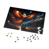 Perfect for puzzle enthusiasts and space lovers alike, "The Cosmic Rebirth of the Phoenix and the Watcher" jigsaw puzzle is an invitation to a meditative engagement with the cosmos. Upon completion, it serves as a breathtaking piece of art, full of dynamic color and profound storytelling that captures the imagination and ignites a sense of wonder about the universe we inhabit.