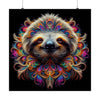This sloth's gentle gaze invites onlookers into a world where time slows, and the wonders of the universe unfold in the soft curls of its coat. The rich, deep eyes offer a glimpse into a serene wisdom, while the mandala-like arrangements that adorn its being radiate with an inner light and energy.