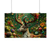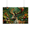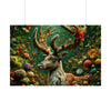 Embrace the allure of nature's mystical symphony with "The Enchanted Guardian of the Verdant Realm" poster. This enchanting visual masterpiece features Lyra, a regal reindeer whose antlers burgeon not with bone but with a flourishing garden. Each twist and turn of her crown is adorned with a vibrant tapestry of flowers, from the gentle blush of spring roses to the deep purples of twilight blossoms. Aflutter around her are delicate butterflies, each drawn to the bountiful nectar and the tranquility of her presence.