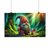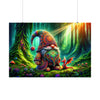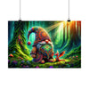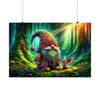 Step into a realm of wonder with our enchanting poster, "Guardians of the Enchanted Forest." This captivating visual feast beckons you into a mystical world where the vibrant and wise gnome Alderroot stands at the heart of a lush, verdant forest. His mandala-adorned hat and fractal-patterned cloak, resplendent with rich, saturated colors, shimmer with an otherworldly glow.