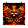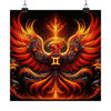 "The Eternal Cycle" poster is a mesmerizing depiction of the eternal dance of creation and destruction, embodied in the form of a dual phoenix. The artwork presents a symmetrical tableau where two phoenixes, mirror images of each other, emerge from the depths of fiery oblivion, their wings unfurled in a display of incandescent splendor. Rich, vivid reds and oranges meld with soft glows of amber, illustrating the raw energy of fire that gives life to these mythic birds.